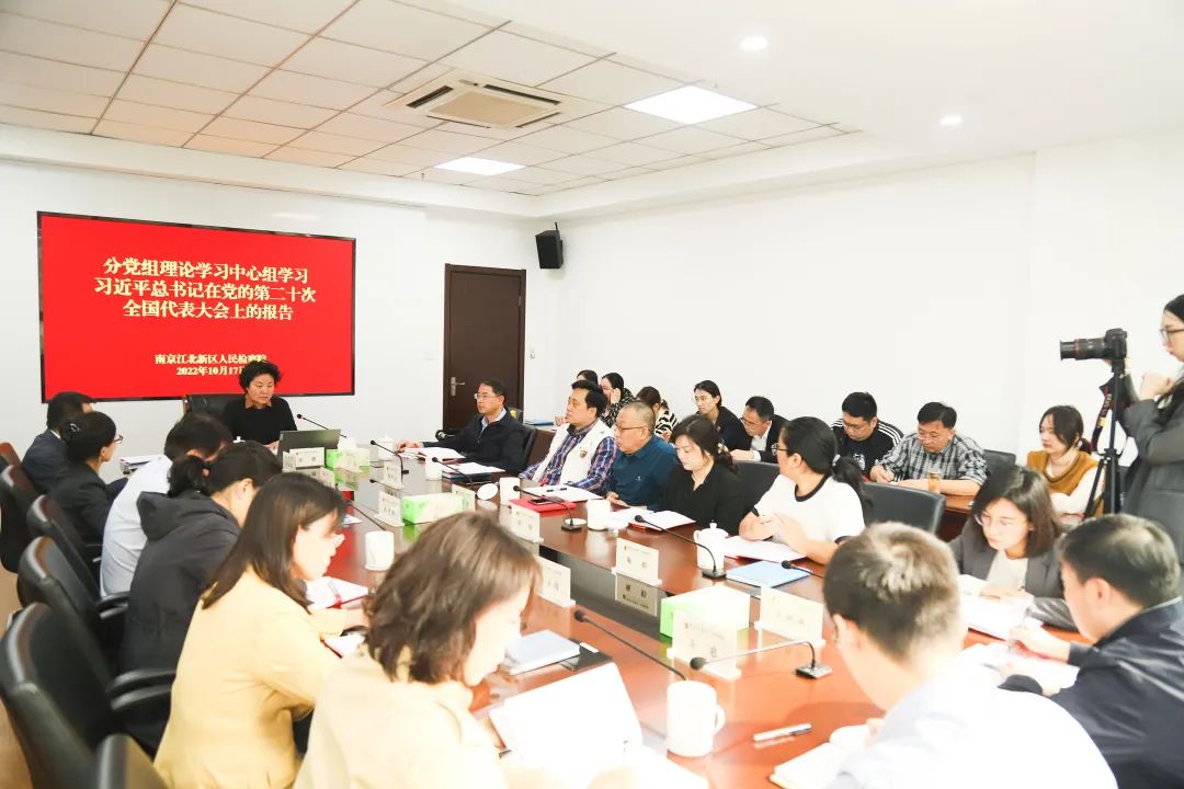 首都千里之外,活力江北新区,广大检察干警热切关注大会进展。在10月16日全程认真聆听了习近平总书记的报告后,17日上午,南京江北新区人民检察院组织专题分党组理论学习中心组学习。